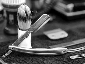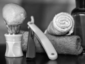 Essential oil, warm towel straight razor shave